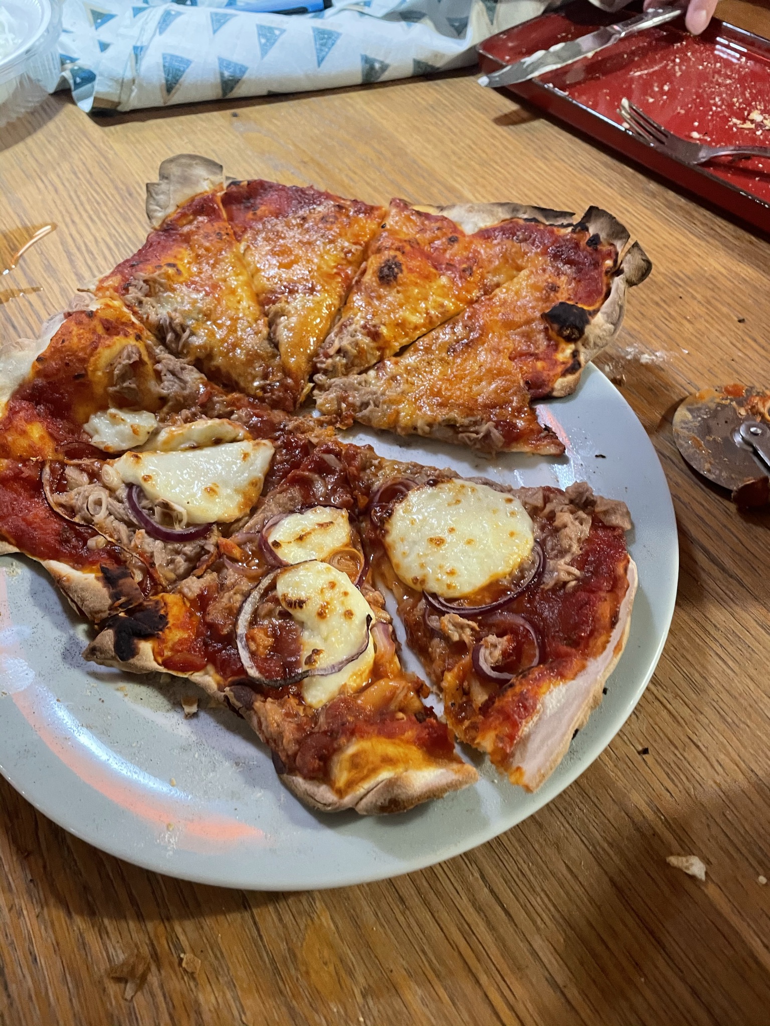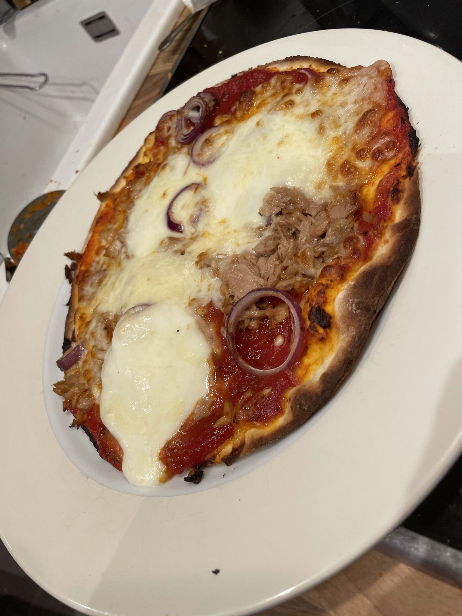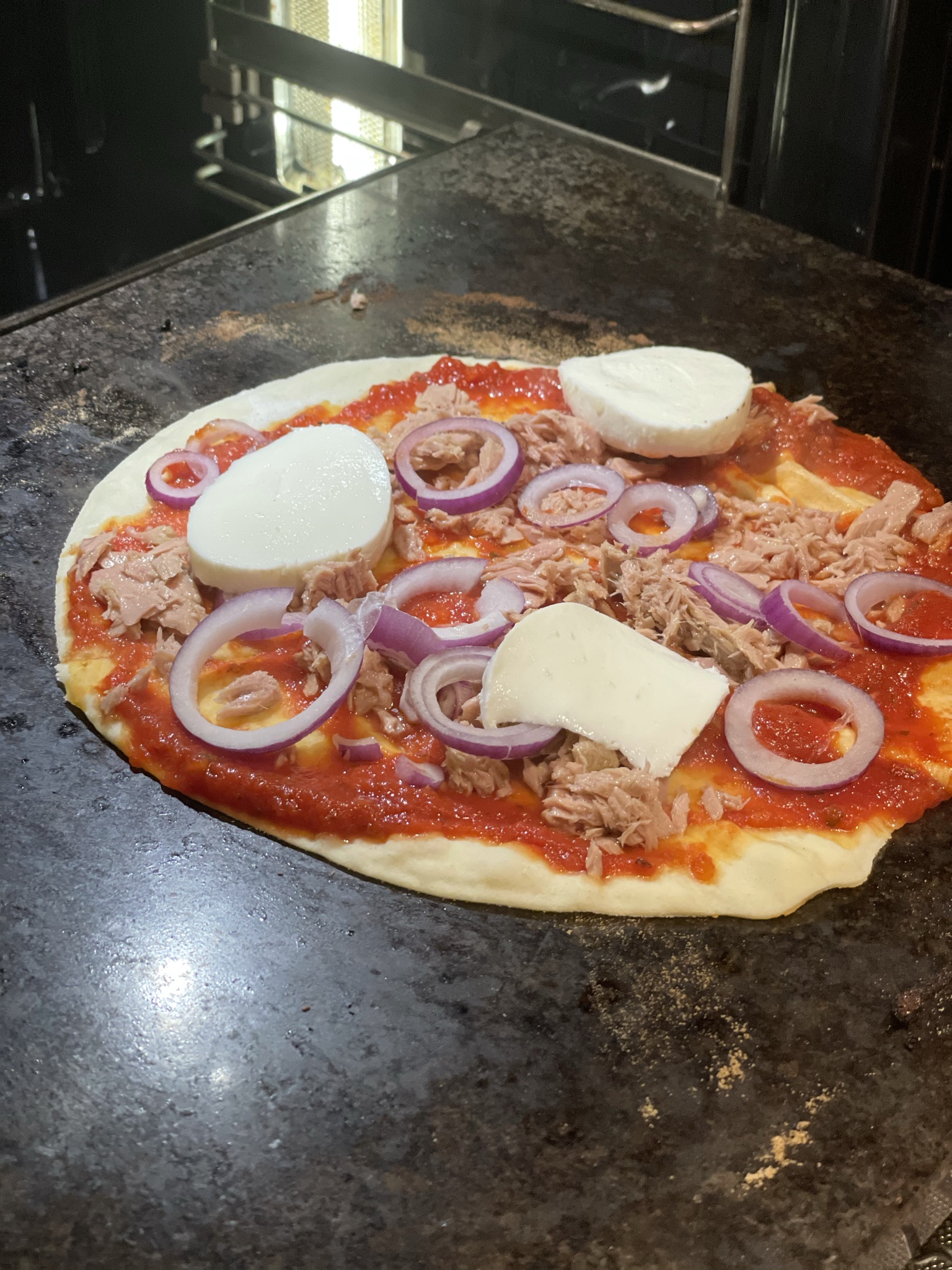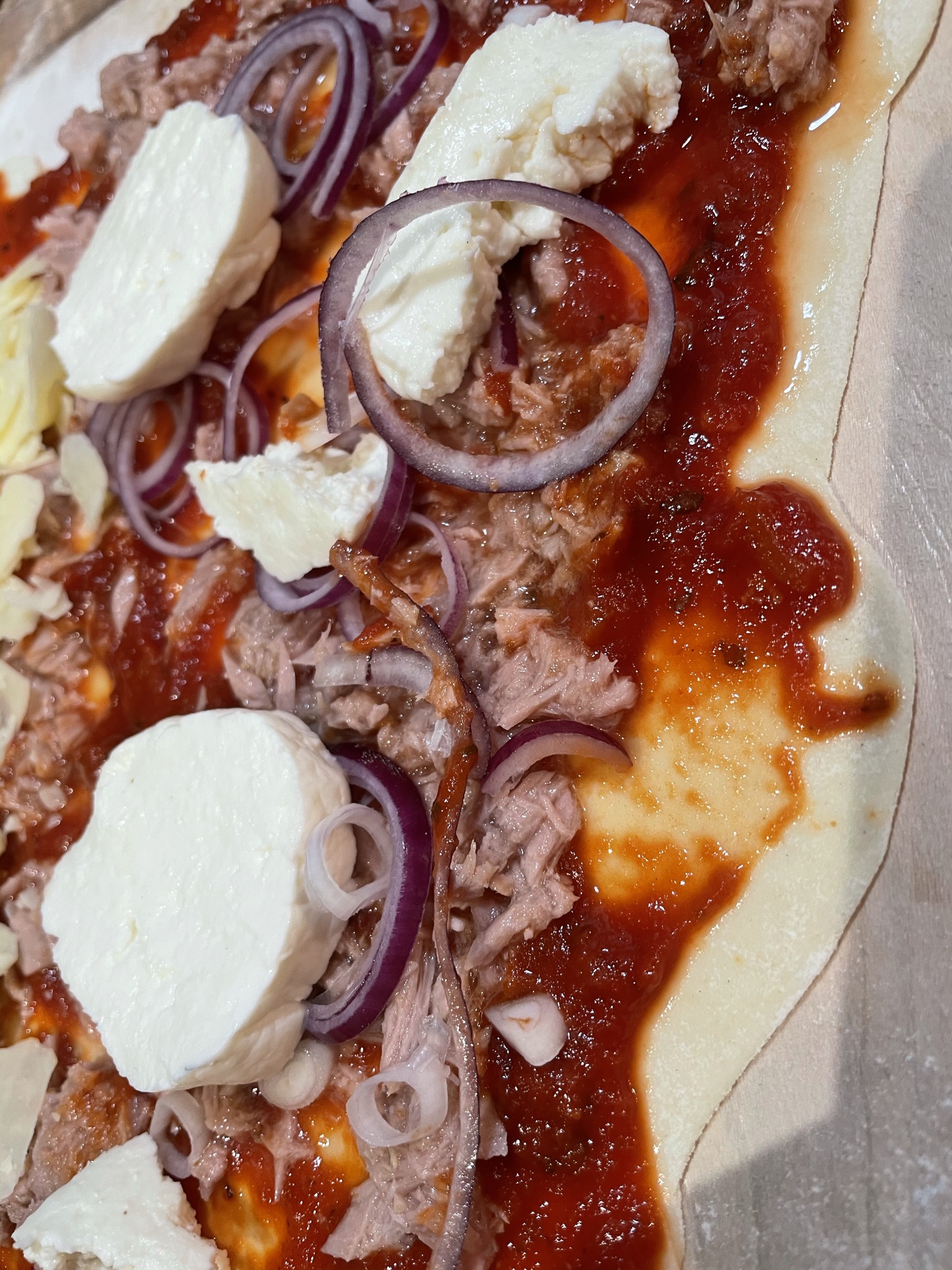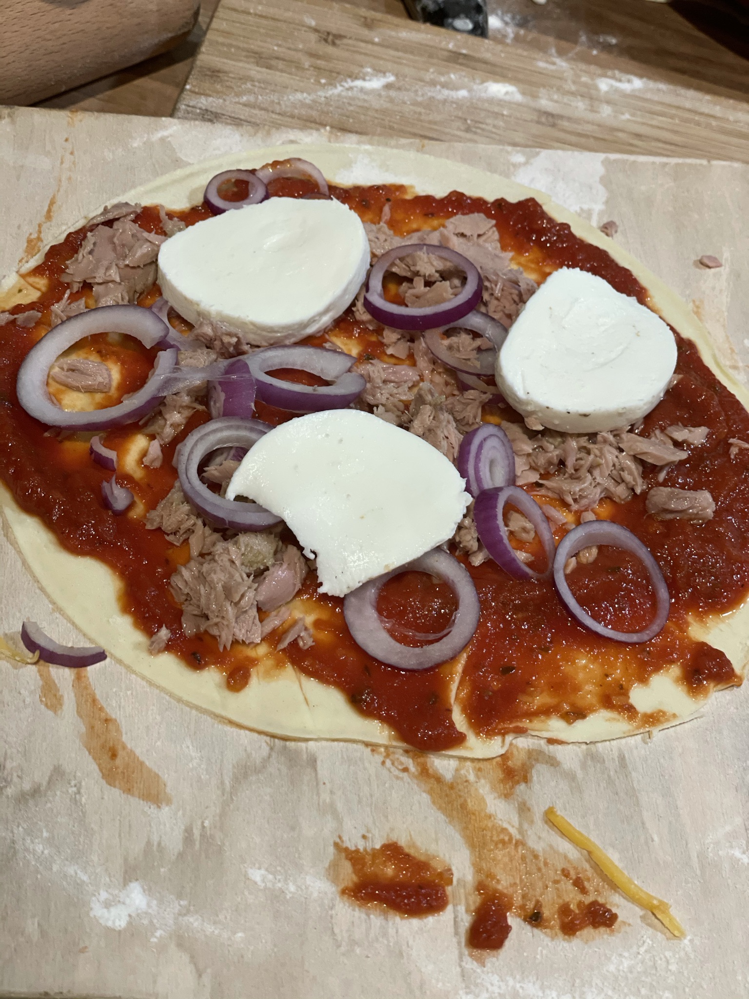 Nichts besonderes, aber toll und die ganze Familie mag Pizza. Unterschiedlich belegt natürlich, der Rest der Familie mag gerne Thunfisch und rote Zwiebeln, auch mal Pilze, ich mag lieber eine einfache Margherita. Dazu hab ich den selbstgemachten Mozzarella benutzt.